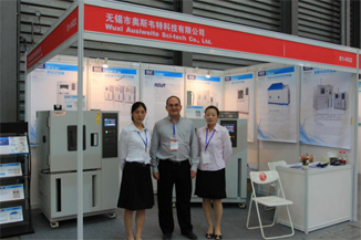 参展样机为GDW/SJ-0150型高低温湿热交变试验箱及CJ-0100型两厢式冷热冲击试验箱,均为汽车制造行业及检测的常用产品。